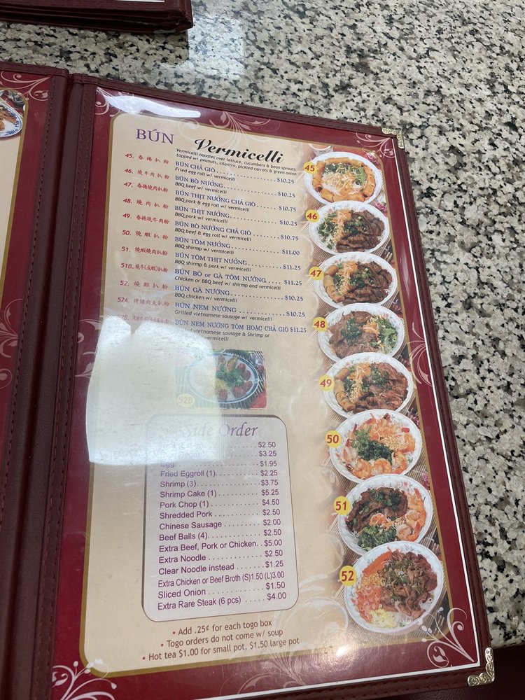 Introducing the menu at Pho Lee Hoa Phat, a Vietnamese noodle soup haven located in Pleasant Hill, California. Known for its fast, fresh, and flavorful dishes, this restaurant offers a variety of options for both meat lovers and vegetarians. Customers rave about the rich and authentic taste of their pho, made with high-quality ingredients like tender flank steak, meatballs, and tripe, served with piping hot broth and fresh herbs. The outdoor seating adds to the relaxed ambiance, perfect for enjoying a bowl of hot soup on a chilly day. With quick service, reasonable prices, and a diverse menu including refreshing fruit smoothies and traditional rice dishes, Pho Lee Hoa Phat is a must-visit for anyone craving authentic Vietnamese cuisine.